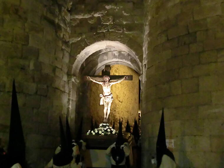 La cruz actual fue tallada por el escultor zamorano Hipólito Perez Calvo en 1968 para defilar en la procesión del martes Santo.