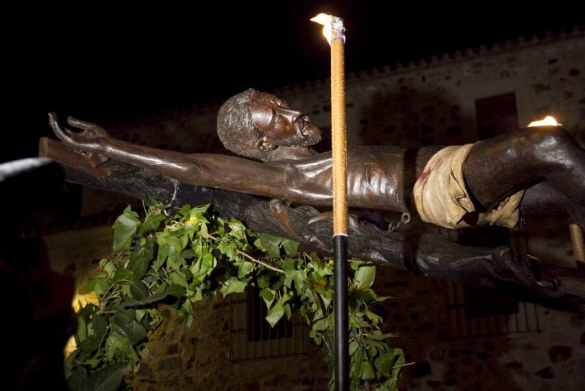 Por segundo año consecutivo, la Hermandad del Cristo Negro de Cáceres (España) hizo la salida de su Cortejo Fúnebre desde la Iglesia de San Francisco Javier, situada en la Plaza de San Jorge.