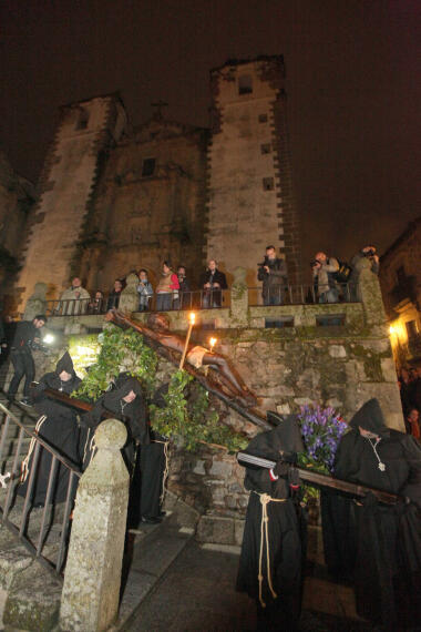 En el silencio de la noche, solamente roto por el sonido de la esquila y el timbal destemplado y en ocasiones por una saeta, el Cristo Negro recorrió anoche un año más la hermosa ciudad monumental de Cáceres acompañado por los cacereños que no han querido perderse una de las procesiones más emblemáticas.