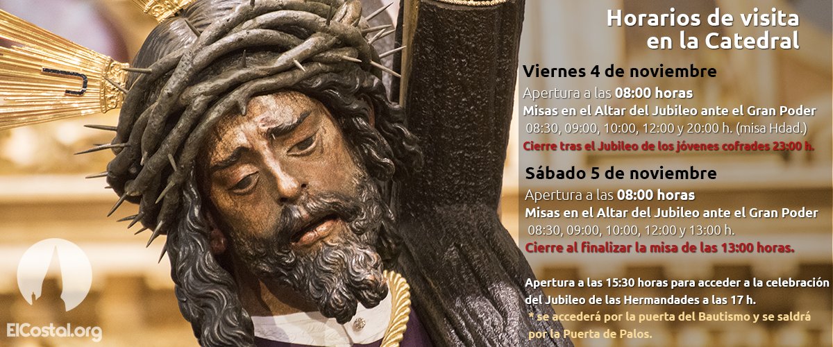 A las 20:00 tendrán lugar en el altar del Jubileo los cultos programados por la Hermandad del Gran Poder, con el canto del salmo Miserere y a continuación, misa de Hermandad.